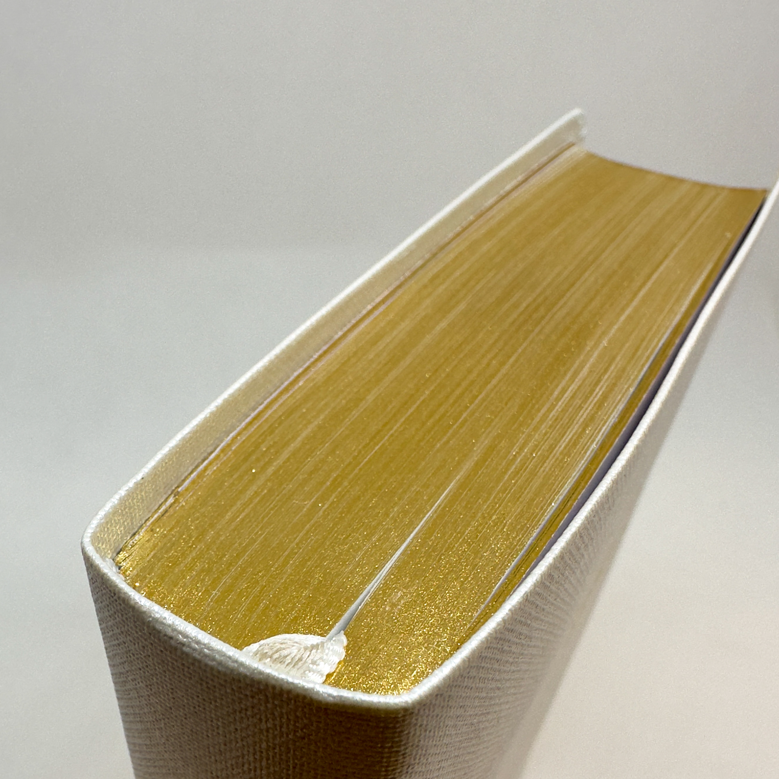 couverture souple, toile blanche nacrée, tranches or